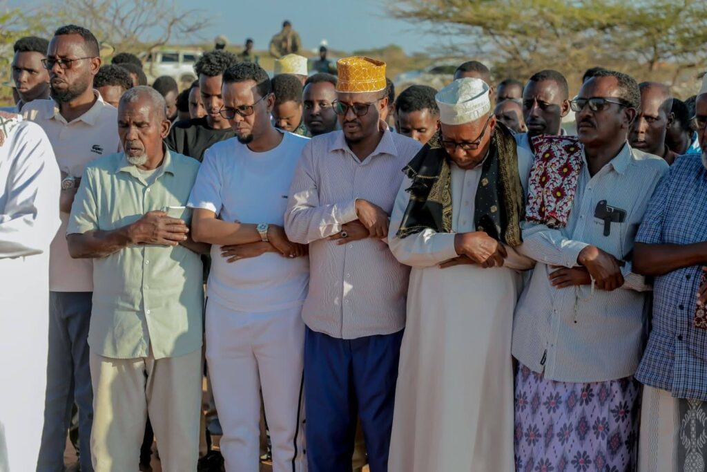 Gaalkacayo, Mudug – (Sahan Post) — A large crowd gathered today at the Gaalkacayo cemetery to lay to rest Saabiriin Saylaan Cabdulle, who was killed on 12 November in Gaalkacayo. The funeral drew significant attendance, including senior regional officials, security commanders, religious leaders, elders, women, and hundreds of community members who came to express grief over the death of the 14-year-old orphan whose life was taken under tragic circumstances.