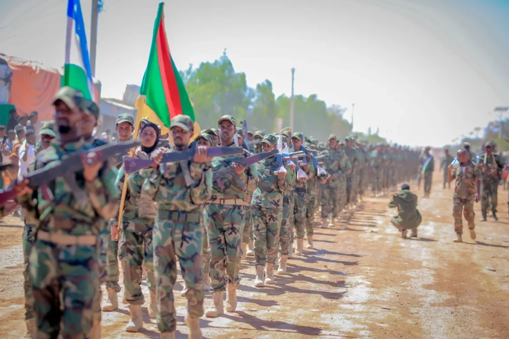Badhan (Sahan Post): A major military graduation ceremony was held yesterday in Badhan, Sanaag region, where more than 1,582 recruits completed their training to join the Puntland Darawiish forces.